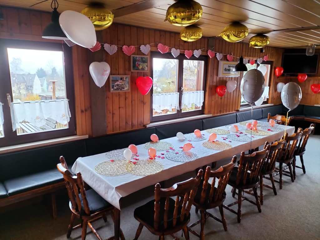 Seit 01.01.2024 kann unser Vereinsheim wieder für Feierlichkeit und ähnliches gemietet werden. Insgesamt stehen dafür rund 100 m² plus die große Sommerterrasse zur Verfügung. Der Gastraum ist rund 50 m² groß und bietet ca. 40 Personen Platz. In unserer Küche kann man für seine Gäste seine Kochkünste unter Beweis stellen. Weiterhin kann man auch auf unserer Terrasse den Grill zum glühen bringen, sollte das alles nicht ausreichen kann man auch den nahegelegen Catering Service in Anspruch nehmen.